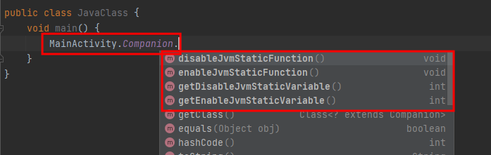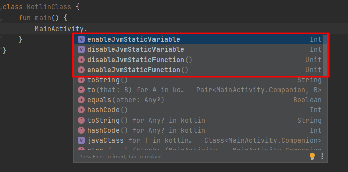 아래와 같이 클래스.Companion을 입력하면 코틀린의 정적 멤버에 접근이 가능합니다.