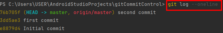 로그를 찍어 확인해보았습니다. git log 옵션으로 --oneline 을 붙여주면 한줄씩 간략하게 로그를 확인 할 수 있습니다.